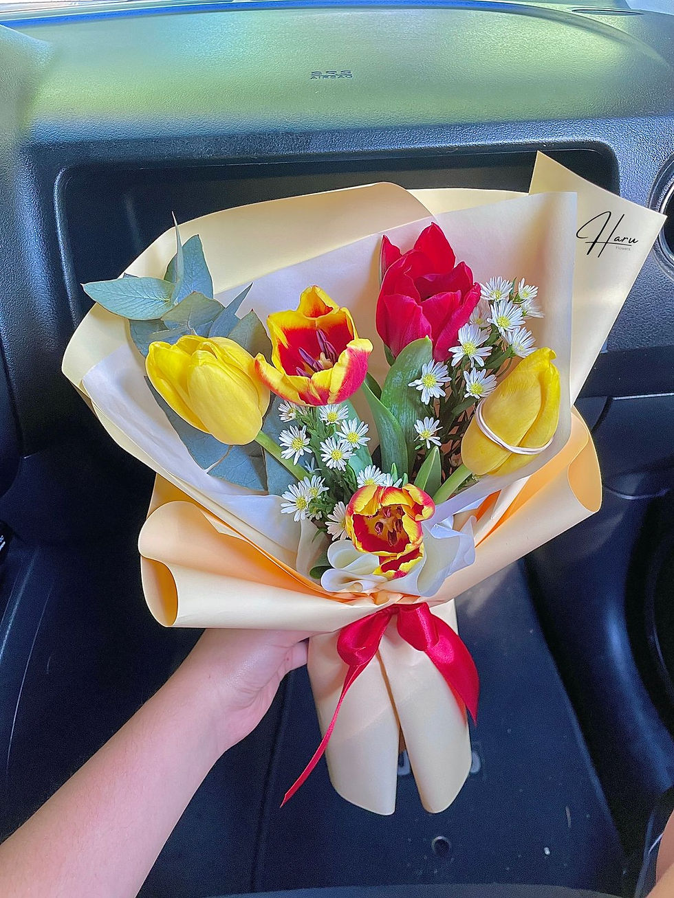 Ramo de tulipanes y mini claveles
