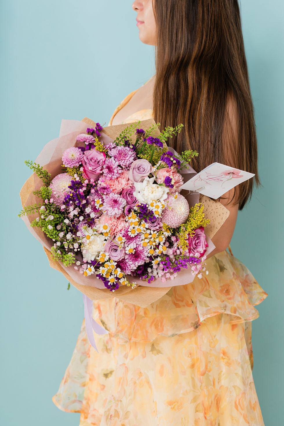 Si bien el diseño final puede no ser idéntico a la imagen de referencia, siempre respetaremos la estructura del ramo y la cantidad de flores establecida, cuidando cada detalle para entregar un arreglo fiel al estilo Haru.